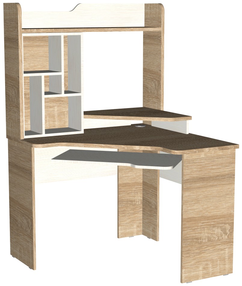 НКМ "Чемпион" Стол компьютерный угловой (1уп) В столе расположены открытые полки, выкатная полка для клавиатуры, полка для монитора. Такое наполнение позволит использовать стол не только как компьерный, но и как полноценный рабочий письменный стол. Расположение открытых полок (слева или справа) определяется при сборке.