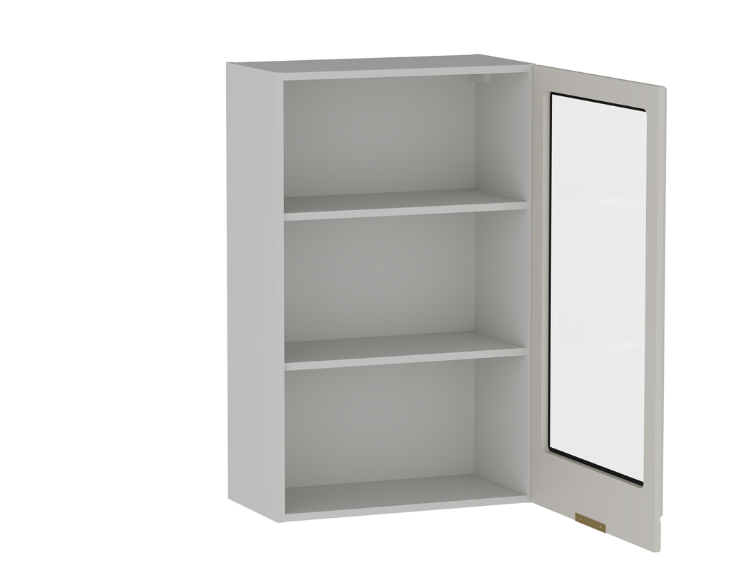 Внутри шкафа расположены две полки. Открывание двери (влево или вправо) определяется при сборке. Фурнитура для крепления шкафа к стене в комплекте. Дополнительно в шкафу можно заменить полки ЛДСП на полки стекло.
