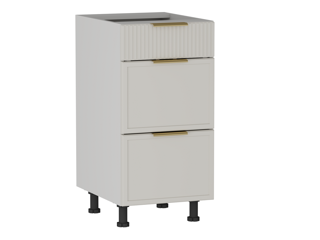В столе расположены три ящика на шариковых направляющих. Столешница и плинтус приобретается отдельно.
