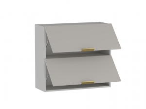 Внутри шкафа два отдельных отдела. На дверях установлены кронштейны, обеспечивающие плавное открывание вверх. Фурнитура для крепления шкафа к стене в комплекте.